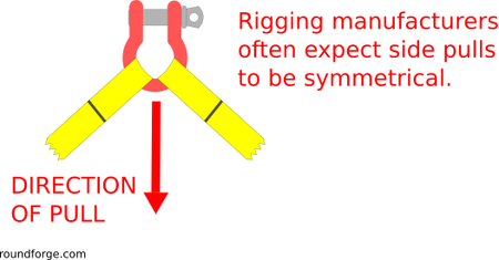 Rigging manufacturers expect shackles to have a symmetric load when they are side-pulled. In this configuration, the shackle can work at its maximum Working Load Limit.