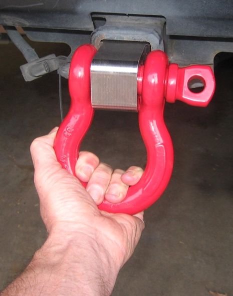That's where the shackle hitch comes in: a block of steel or aluminum that slides into your tow receiver and takes a shackle.